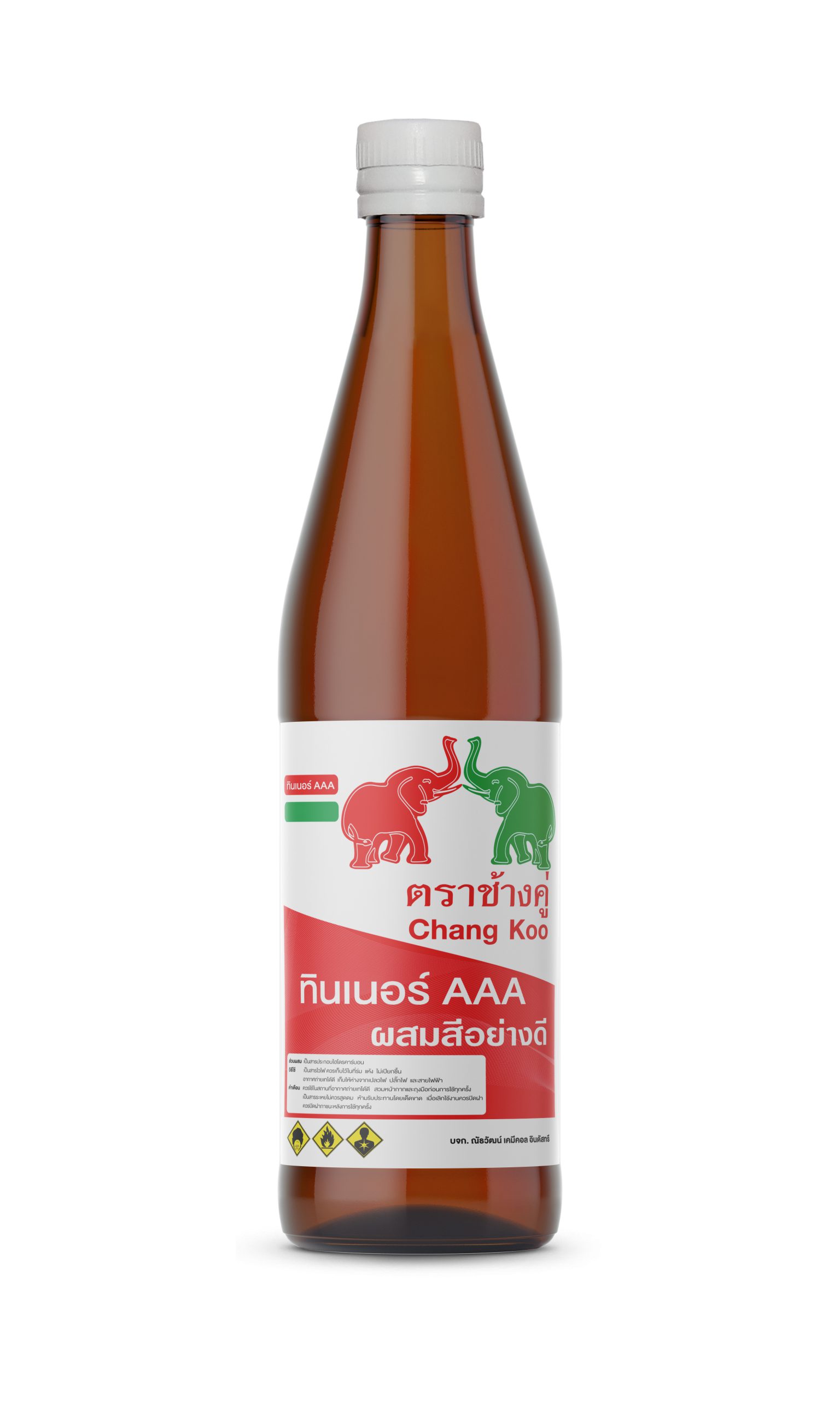 ช้างคู่ ทินเนอร์ ฉลากแดง = ใช้ผสมสีตามอัตตราส่วนต่างๆที่กำหนด / ใช้ล้างอุปกรณ์ แปรงทาสีลูกกลิ้งต่างๆมีทั้งแกลลอนและขวด (เป็นสินค้าตามท้องตลาดทั่วไป)